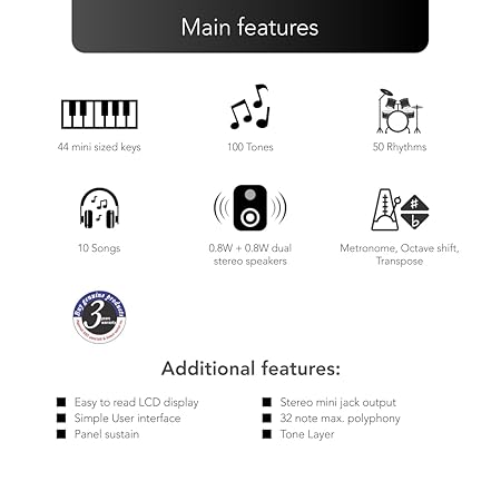 Casiotone Mini Keyboard SA-80 with Piano tones, White (44 Keys)